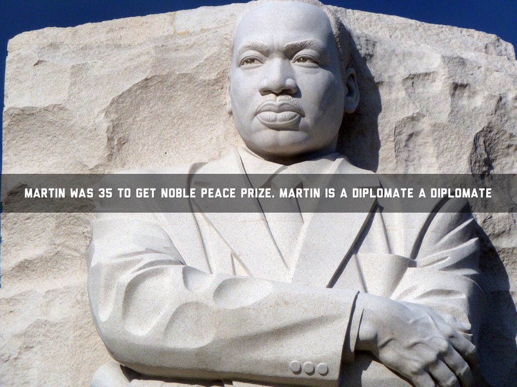 MARTIN WAS 35 TO GET NOBLE PEACE PRIZE. MARTIN IS A DIPLOMATE A DIPLOMATE