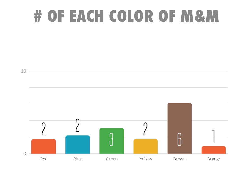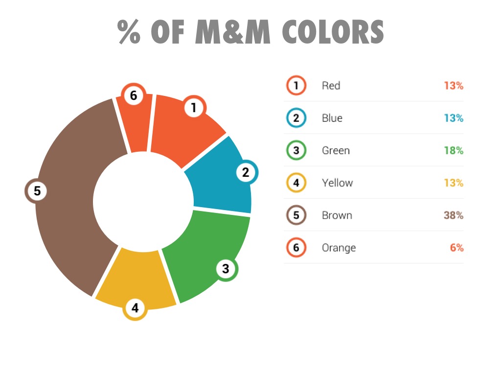 COLOR OF CANDIES-BROWN,BLUE,RED,YELLOW,GREEN,ORANGE