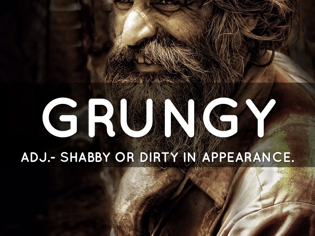 ADJ.- SHABBY OR DIRTY IN APPEARANCE.