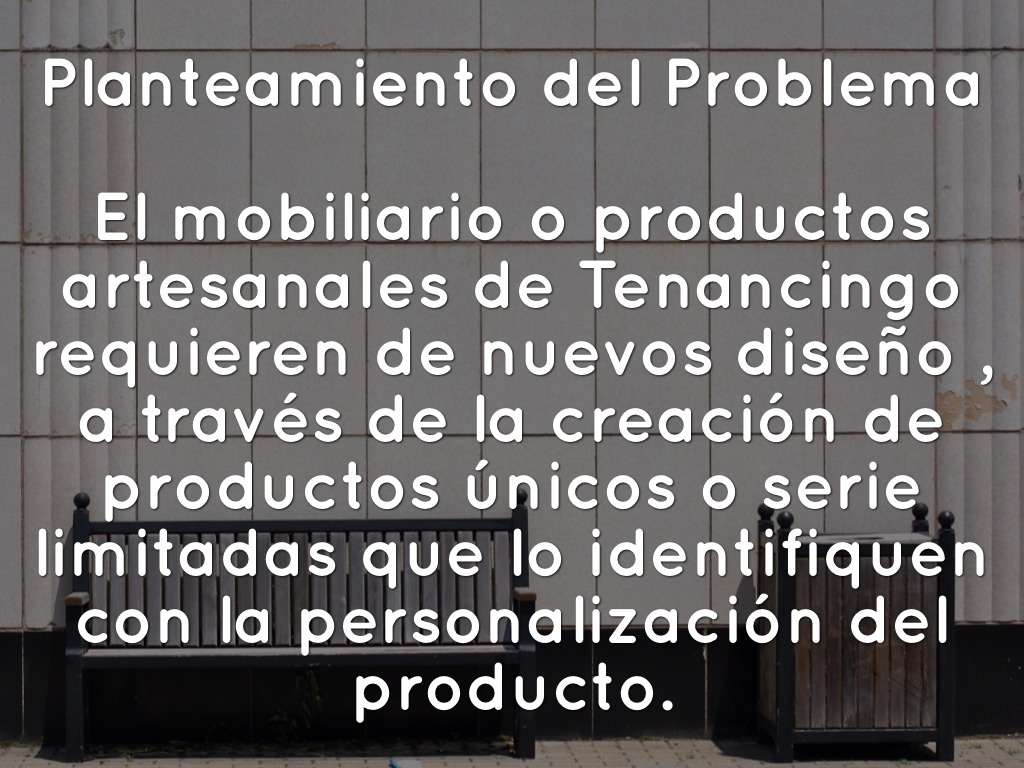 El mobiliario o productos artesanales de Tenancingo requieren de nuevos diseño , a través de la creación de productos únicos o serie limitadas que lo identifiquen con la personalización del producto.