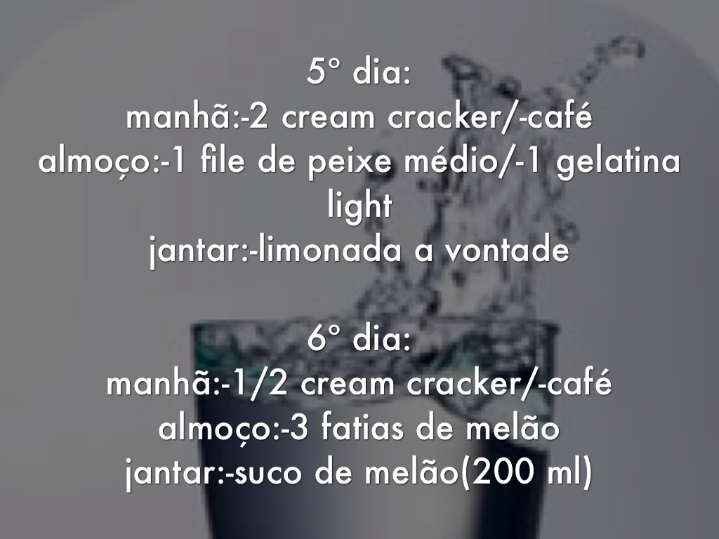 » Não pense nos dias que você vai ficar sem comer, e sim nas banhas que você tem na barriga e precisa perder;