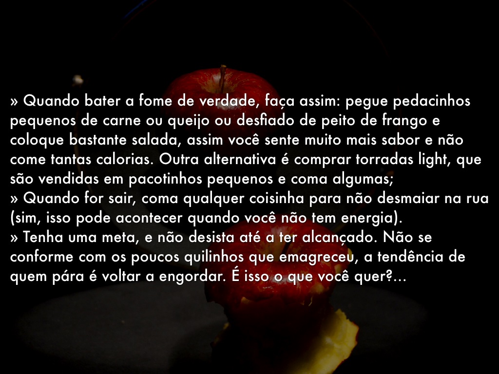» Não pense em comida, pense somente no quanto quer emagrecer;