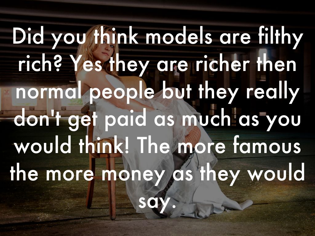 Did you think models are filthy rich? Yes they are richer then normal people but they really don't get paid as much as you would think! The more famous the more money as they would say.