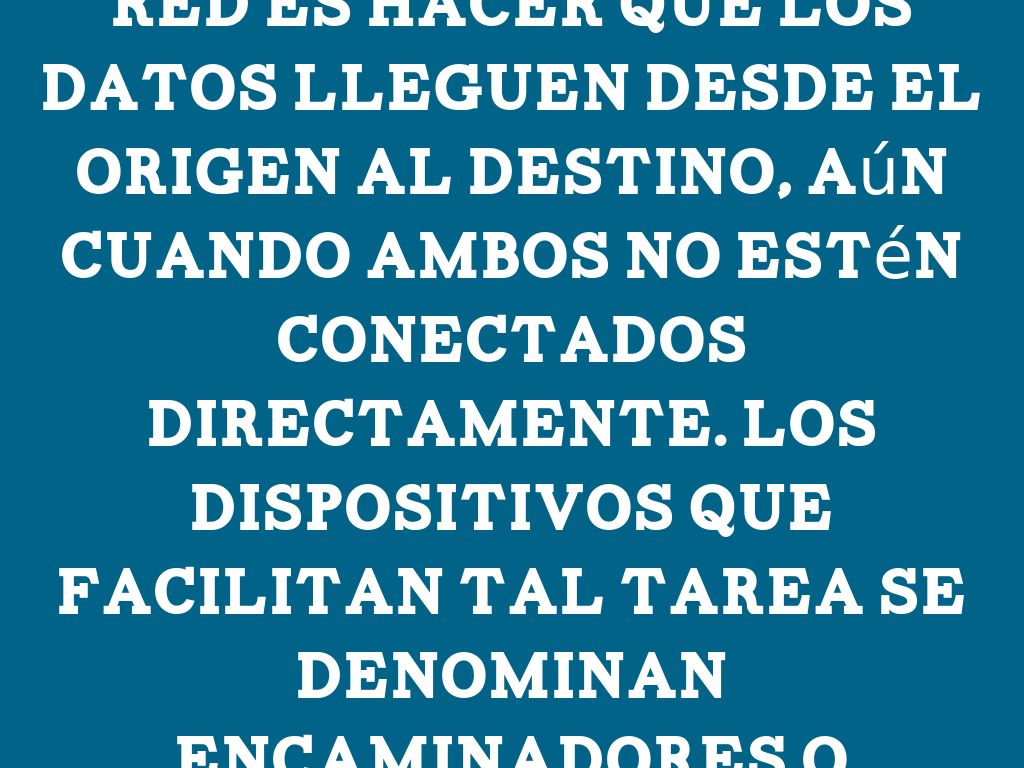 El objetivo de la capa de red es hacer que los datos lleguen desde el origen al destino, aún cuando ambos no estén conectados directamente. Los dispositivos que facilitan tal tarea se denominan encaminadores o enrutadores,