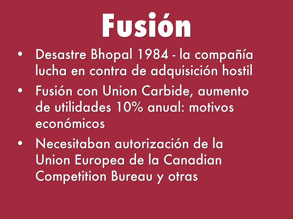 - Fusión con Union Carbide, aumento de utilidades 10% anual: motivos económicos