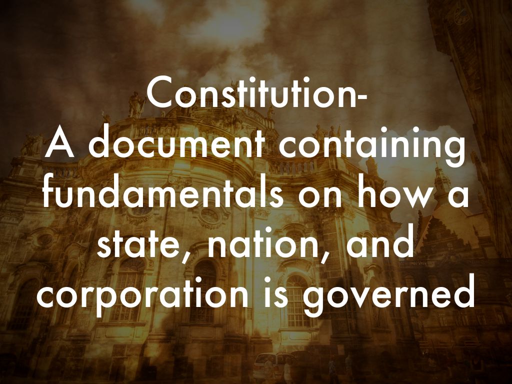 A document containing fundamentals on how a state, nation, and corporation is governed