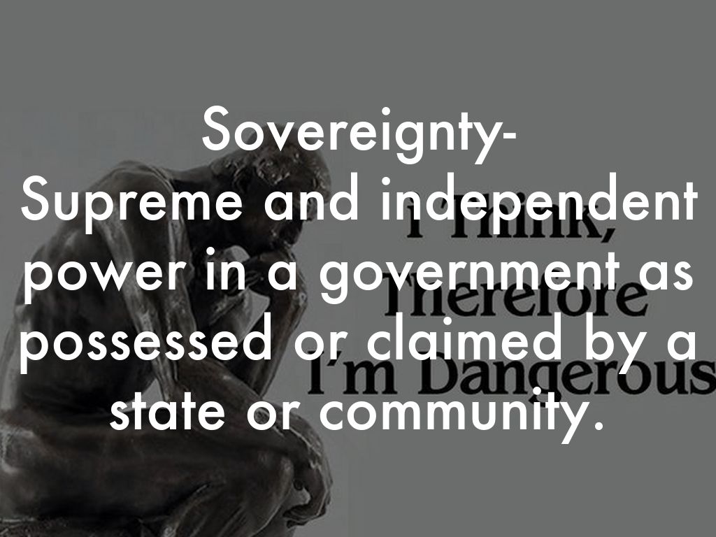Supreme and independent power in a government as possessed or claimed by a state or community.