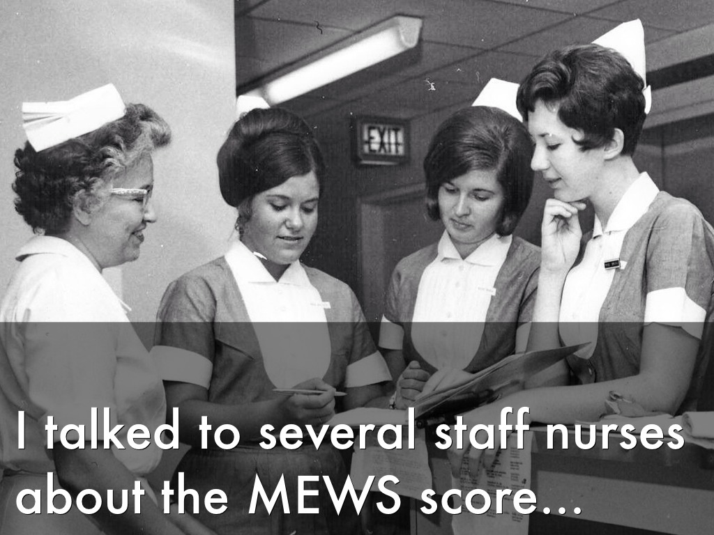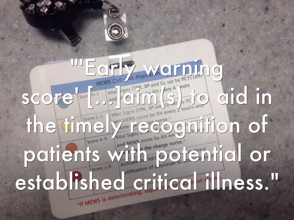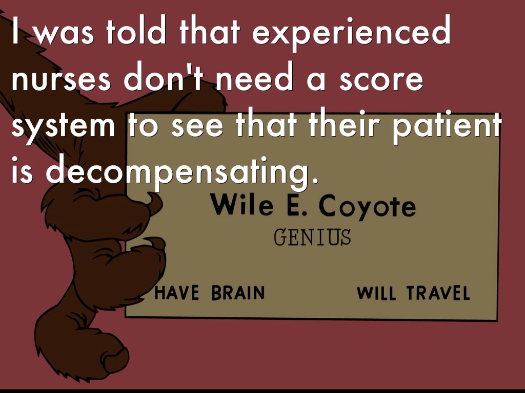 I was told that experienced nurses don't need a score system to see that their patient is decompensating.