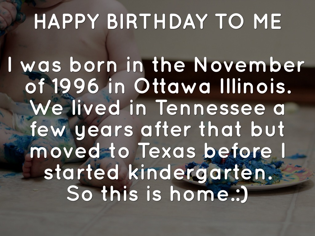 I was born in the November of 1996 in Ottawa Illinois. We lived in Tennessee a few years after that but moved to Texas before I started kindergarten.