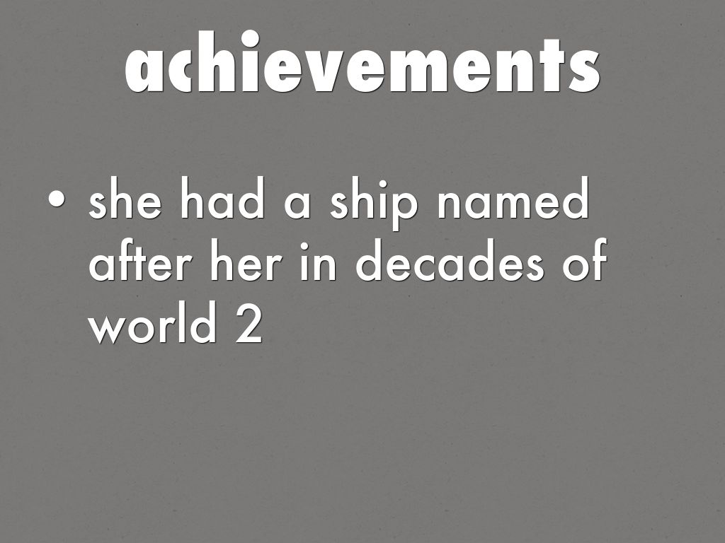 she had a ship named after her in decades of world 2