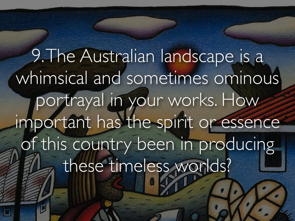 9. The Australian landscape is a whimsical and sometimes ominous portrayal in your works. How important has the spirit or essence of this country been in producing these timeless worlds?