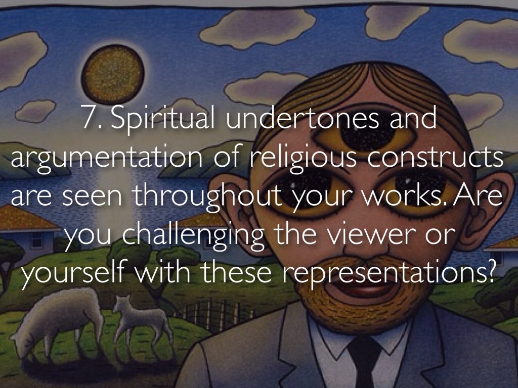 7. Spiritual undertones and argumentation of religious constructs are seen throughout your works. Are you challenging the viewer or yourself with these representations?