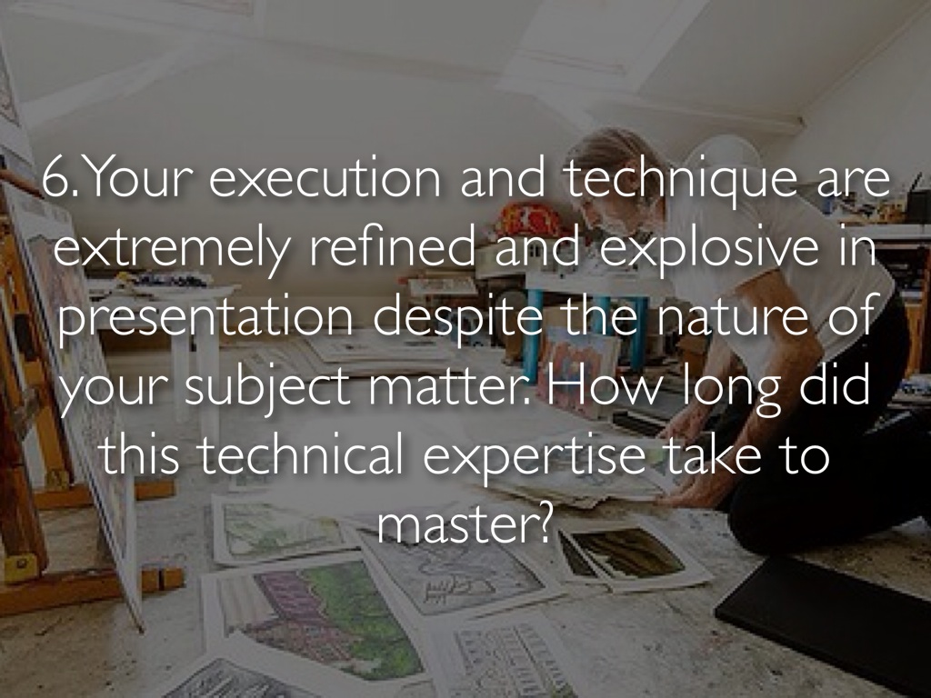 6.Your execution and technique are extremely refined and explosive in presentation despite the nature of your subject matter. How long did this technical expertise take to master?