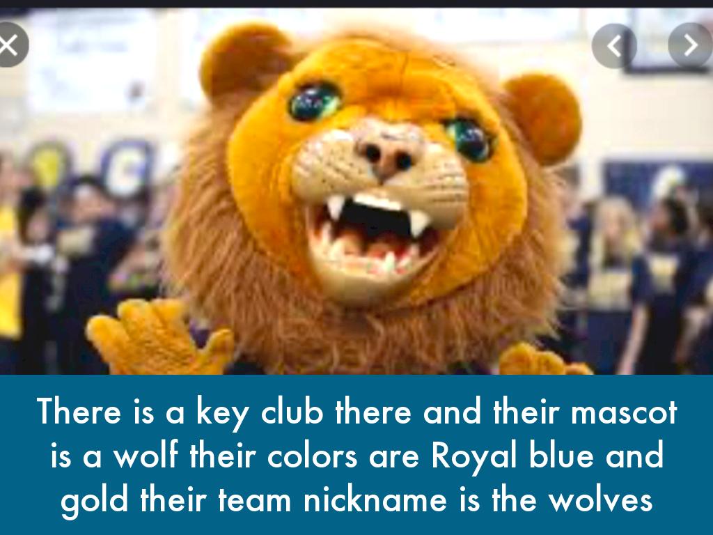 There is a key club there and their mascot is a wolf their colors are Royal blue and gold their team nickname is the wolves