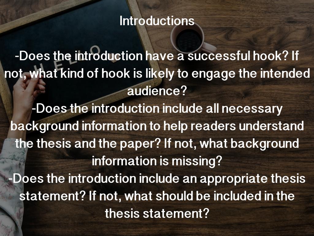 -Does the introduction have a successful hook? If not, what kind of hook is likely to engage the intended audience?