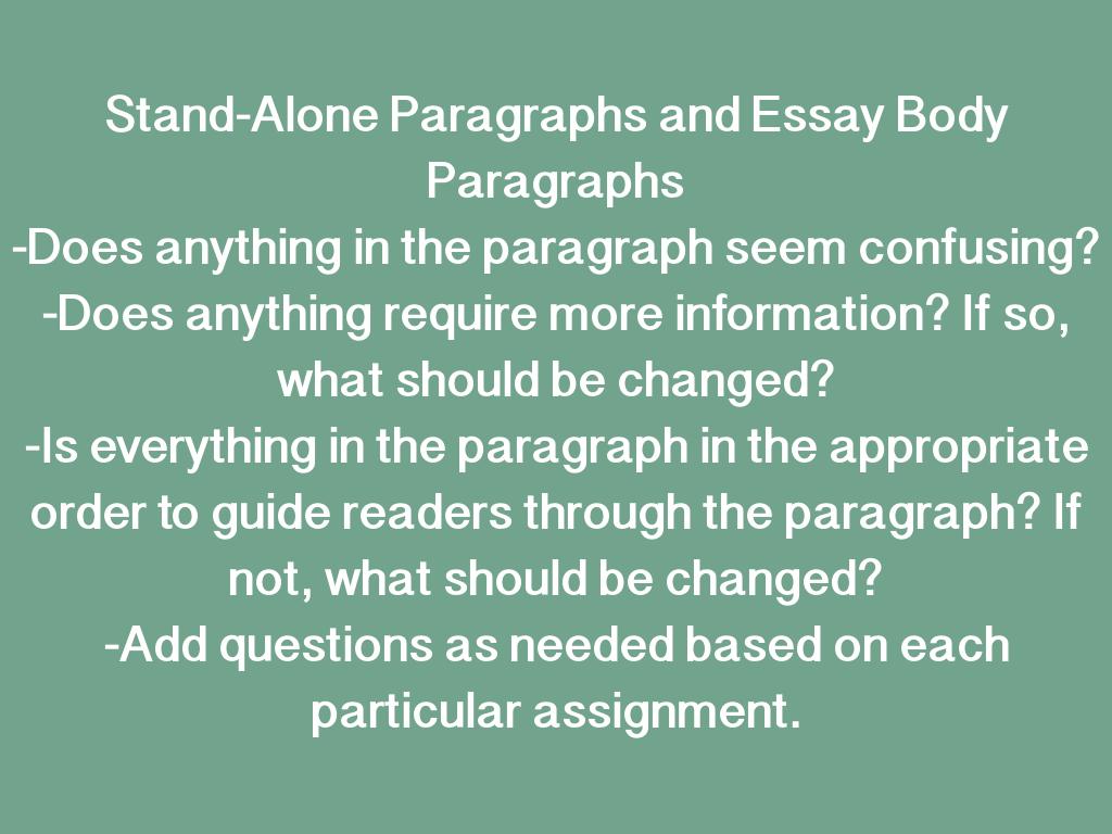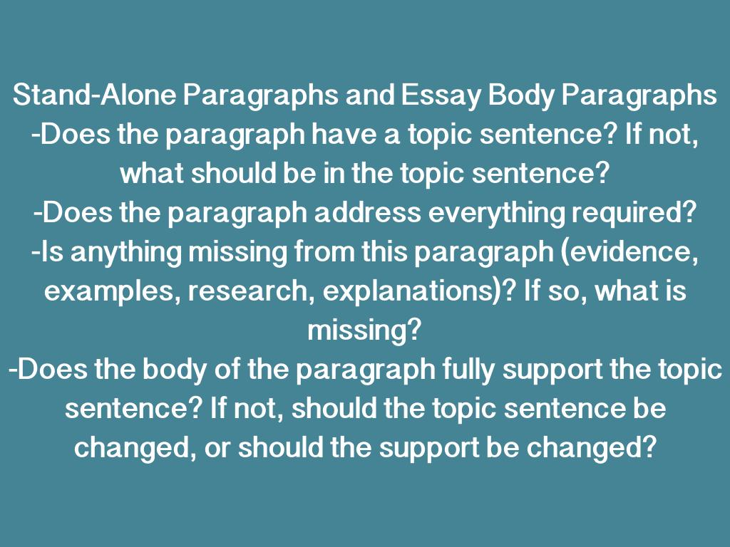 Stand-Alone Paragraphs and Essay Body Paragraphs