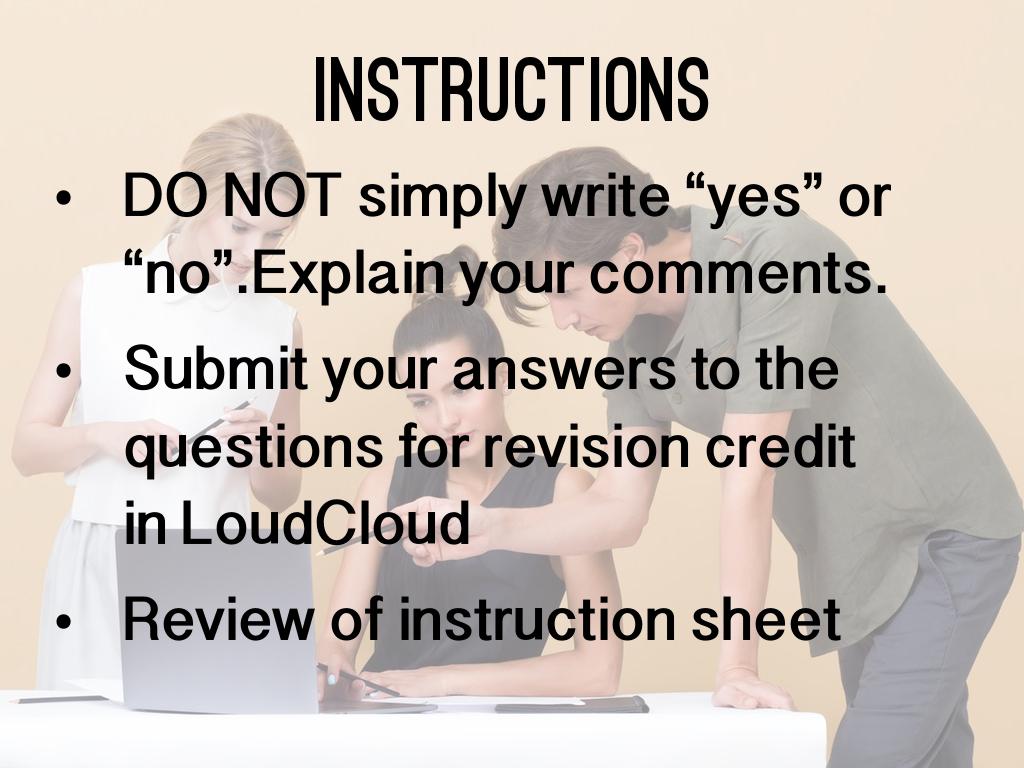 - DO NOT simply write “yes” or “no”.Explain your comments.