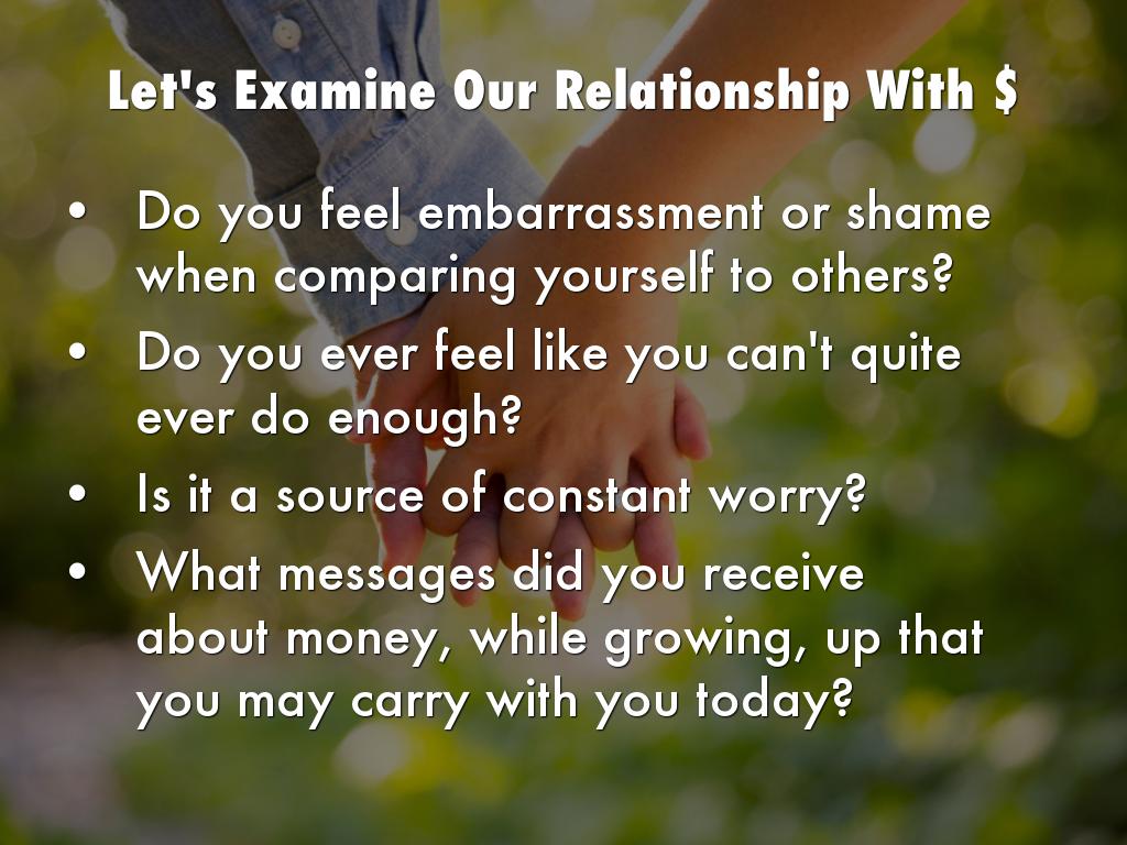 For example, maybe you feel disappointment in how much money you make, how you make your money, or when you compare yourself to others and their financial situation.