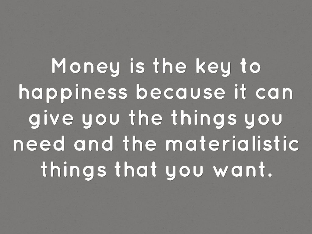 Money is the key to happiness because it can give you the things you need and the materialistic things that you want.