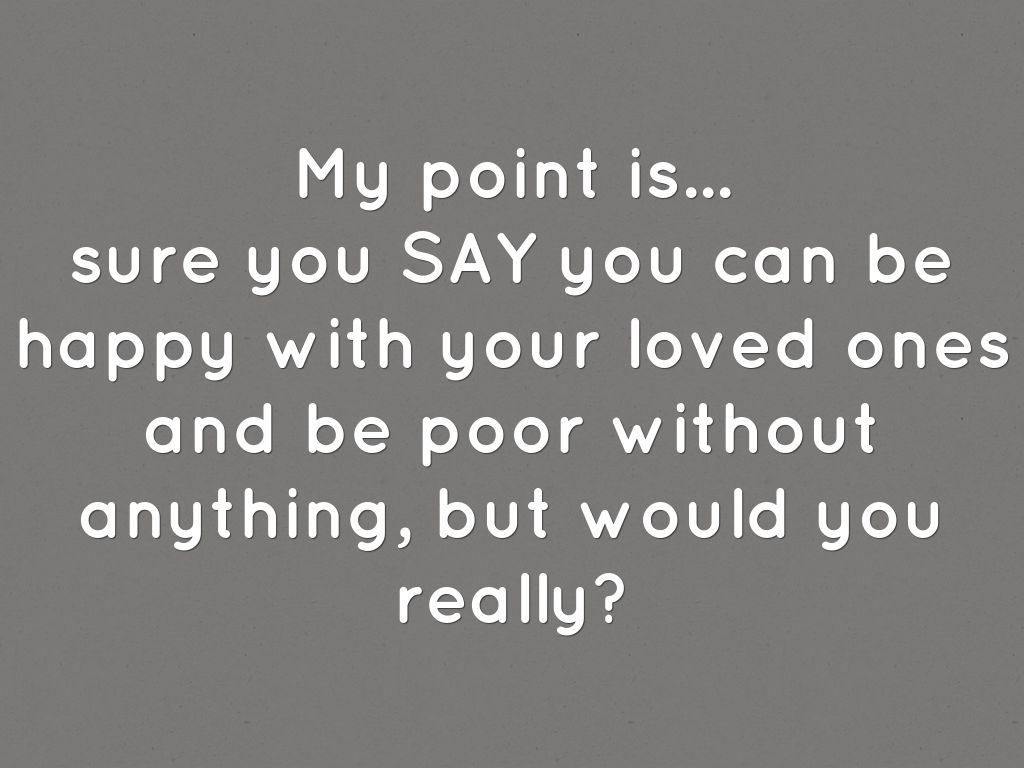 sure you SAY you can be happy with your loved ones and be poor without anything, but would you really?
