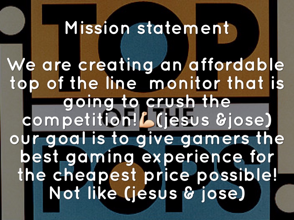 We are creating an affordable top of the line monitor that is going to crush the competition!💪(jesus &jose) our goal is to give gamers the best gaming experience for the cheapest price possible! Not like (jesus & jose)