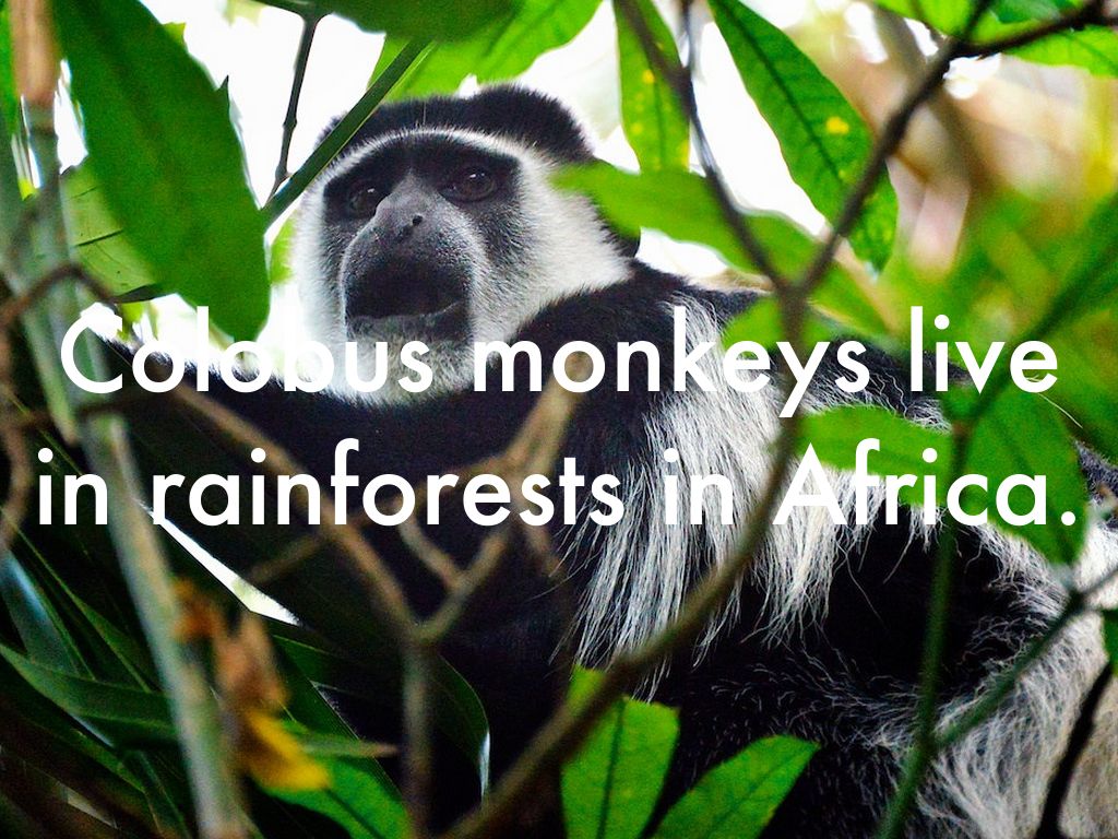 Colobus monkeys live in rainforests in Africa.