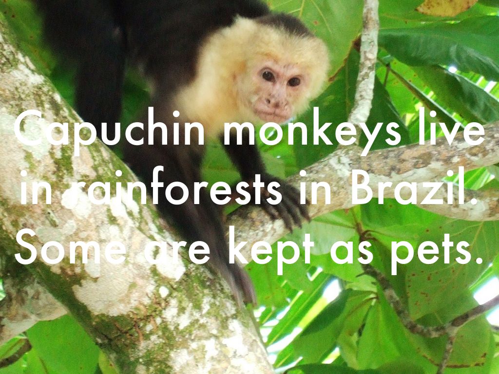 Capuchin monkeys live in rainforests in Brazil. Some are kept as pets.