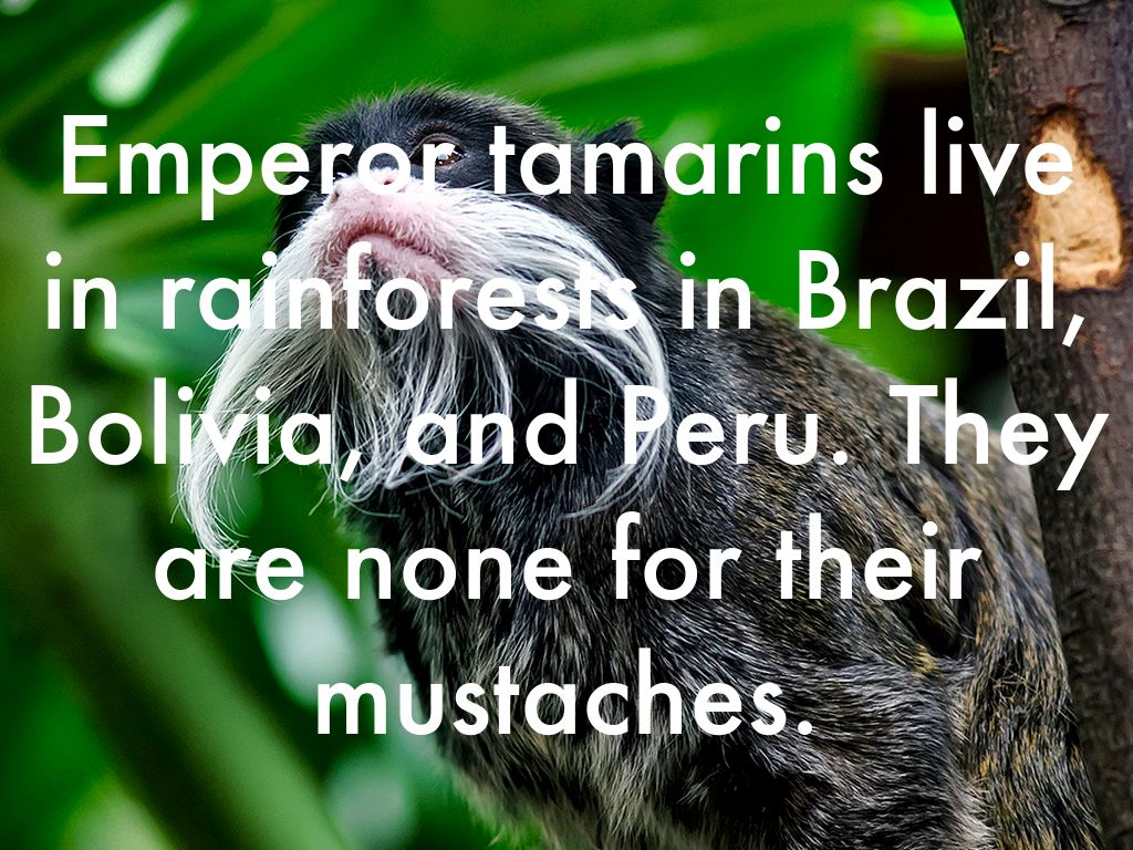 Emperor tamarins live in rainforests in Brazil, Bolivia, and Peru. They are none for their mustaches.