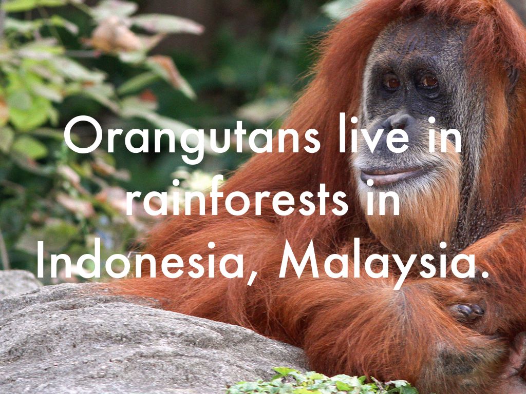 Orangutans live in rainforests in Indonesia, Malaysia.