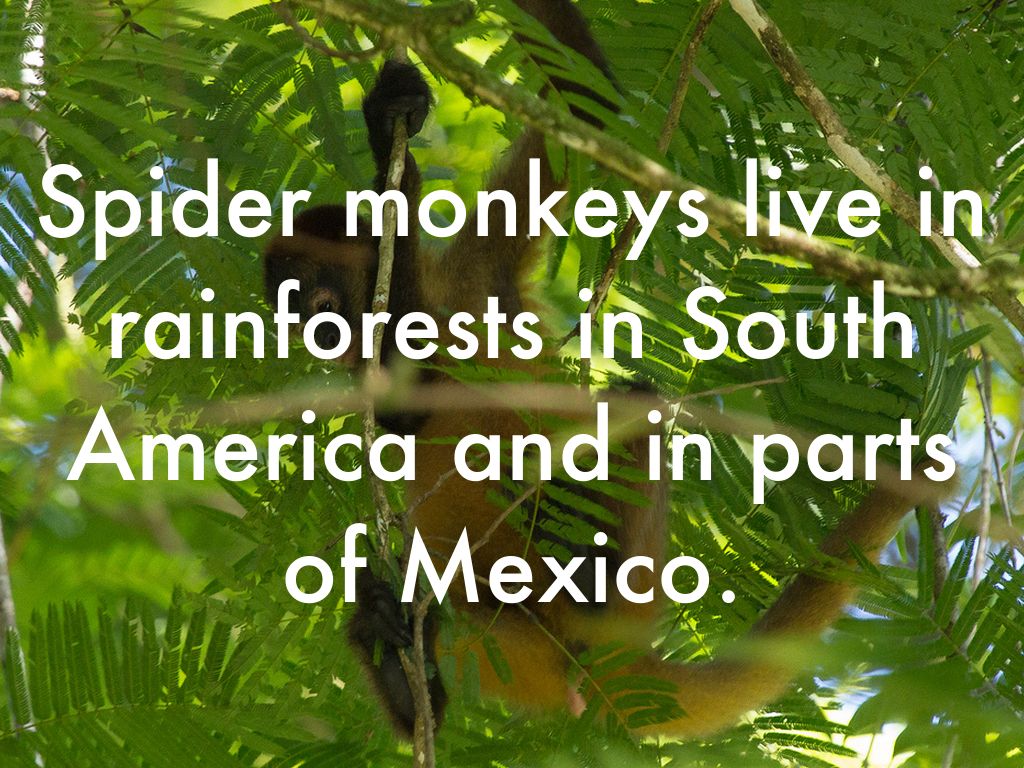 Spider monkeys live in rainforests in South America and in parts of Mexico.