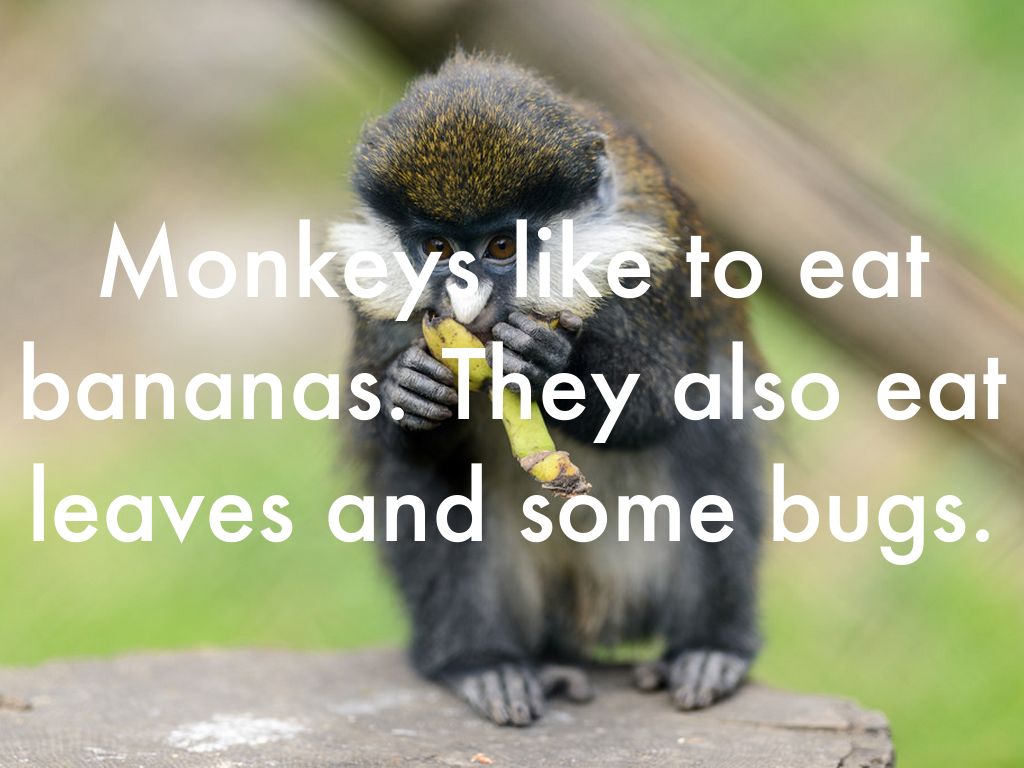 Monkeys like to eat bananas. They also eat leaves and some bugs.