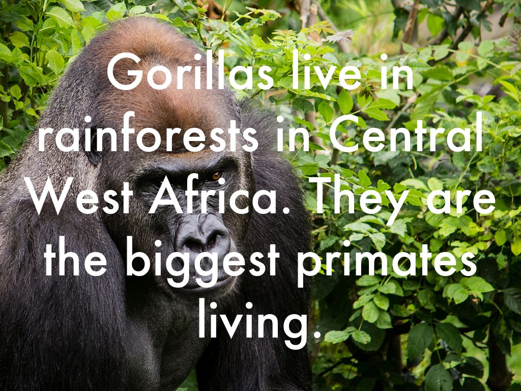 Gorillas live in rainforests in Central West Africa. They are the biggest primates living.