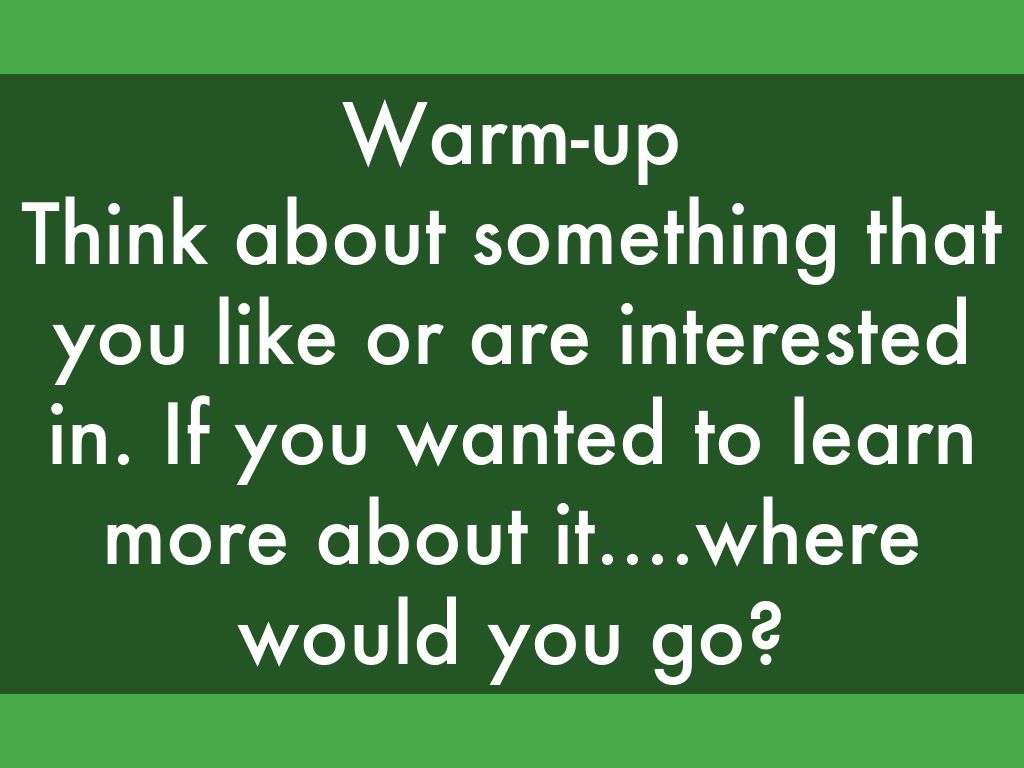 Think about something that you like or are interested in. If you wanted to learn more about it....where would you go?
