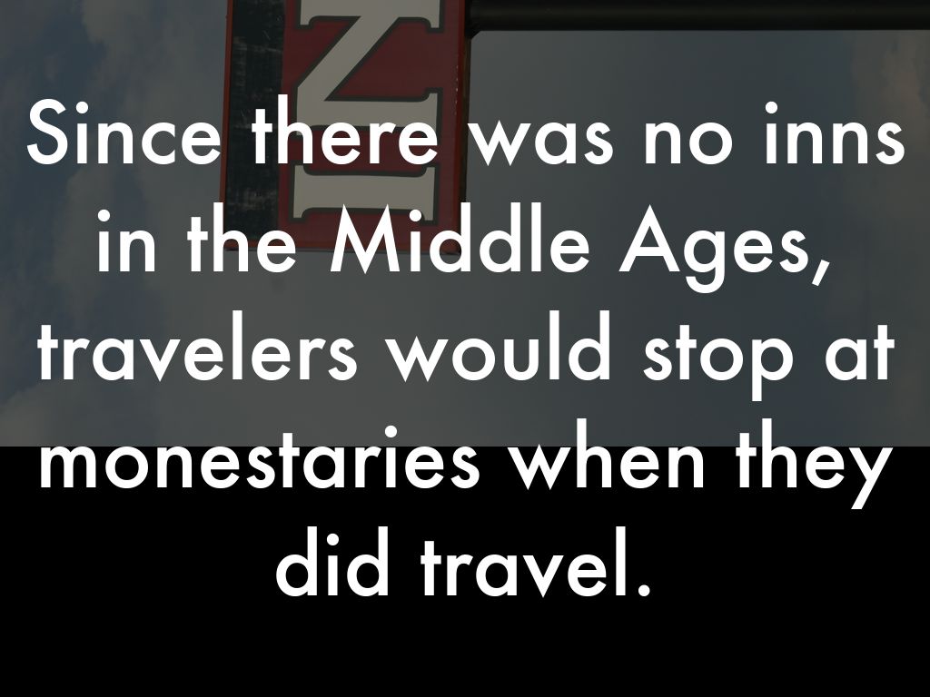 Since there was no inns in the Middle Ages, travelers would stop at monestaries when they did travel.