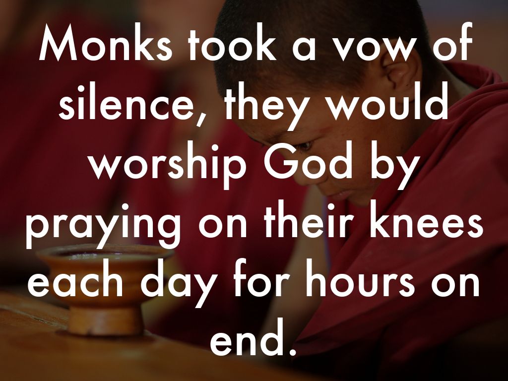 Monks took a vow of silence, they would worship God by praying on their knees each day for hours on end.