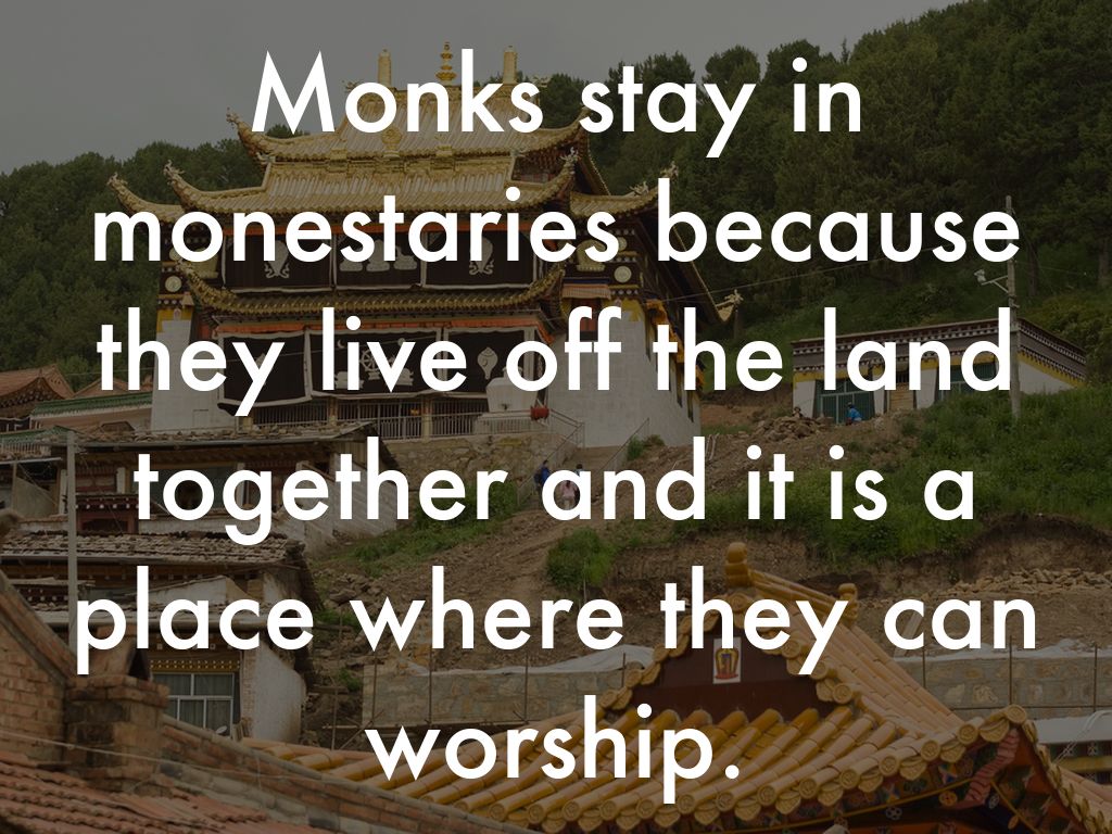 Monks stay in monestaries because they live off the land together and it is a place where they can worship.