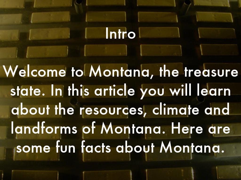 Welcome to Montana, the treasure state. In this article you will learn about the resources, climate and landforms of Montana. Here are some fun facts about Montana.