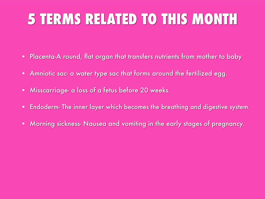 - Misscarriage- a loss of a fetus before 20 weeks.