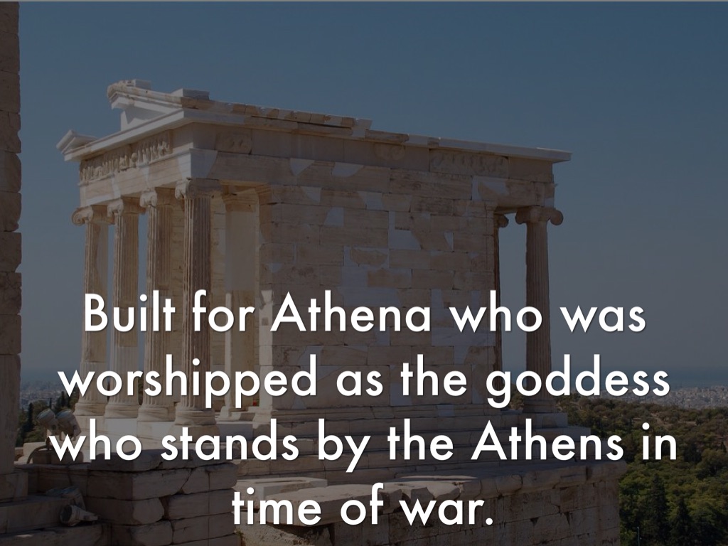 Built for Athena who was worshipped as the goddess who stands by the Athens in time of war.