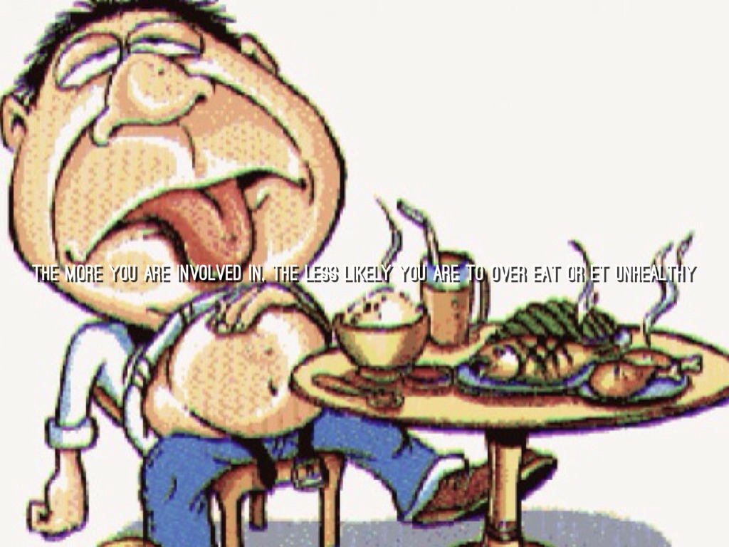 THE MORE YOU ARE INVOLVED IN, THE LESS LIKELY YOU ARE TO OVER EAT OR ET UNHEALTHY