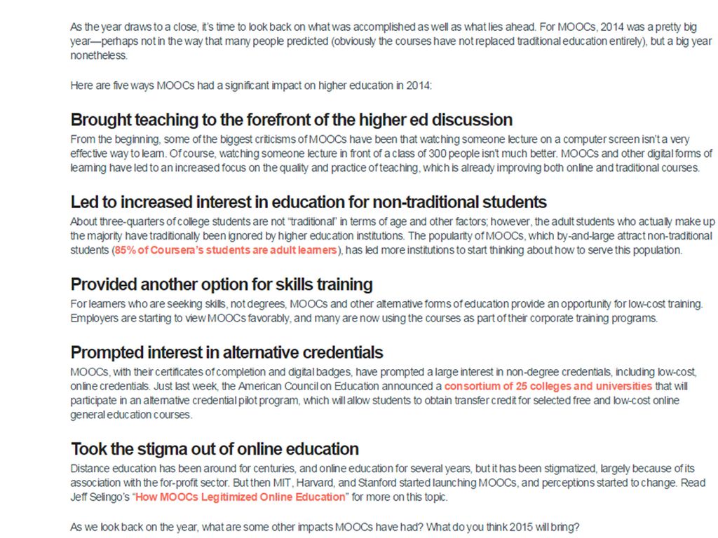 Namely the Open University report on Innovating Pedagogy - talk about actions around MOOCs pedagogy.