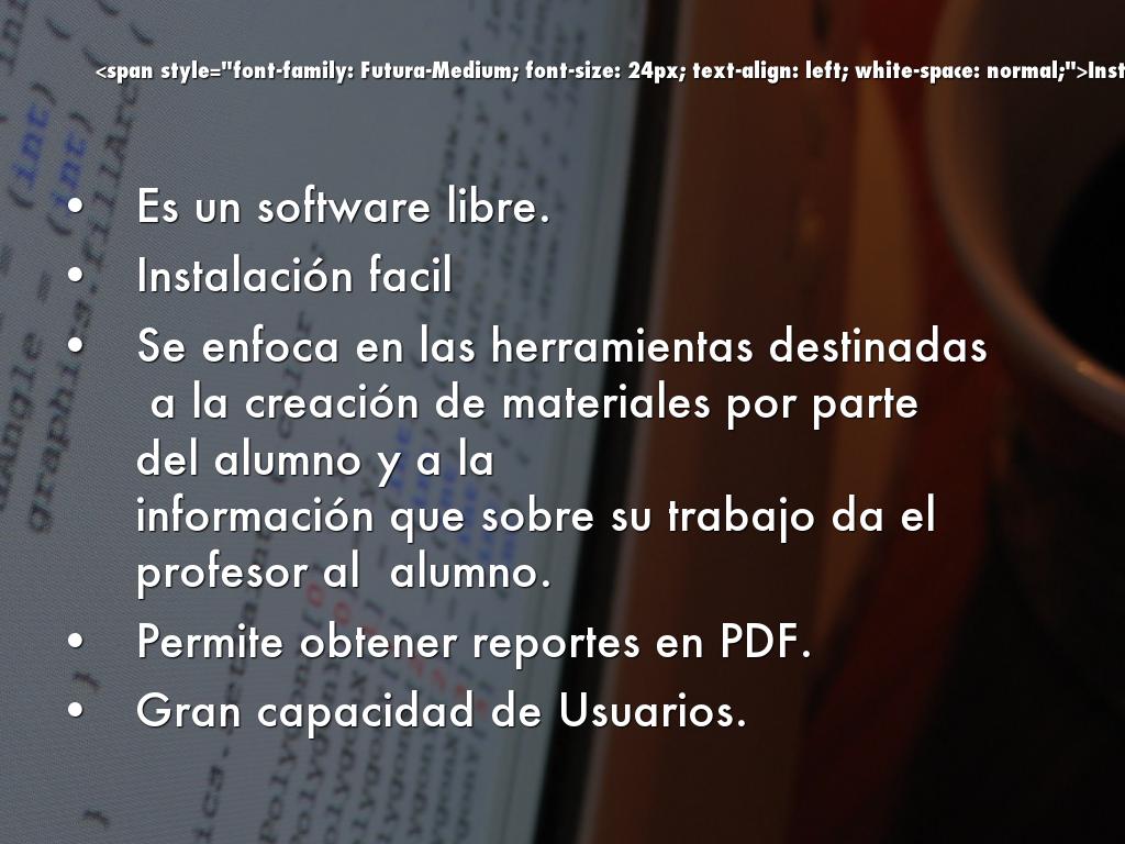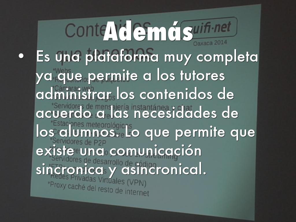 Es una plataforma muy completa ya que permite a los tutores administrar los contenidos de acuerdo a las necesidades de los alumnos. Lo que permite que existe una comunicación sincronica y asincronical.