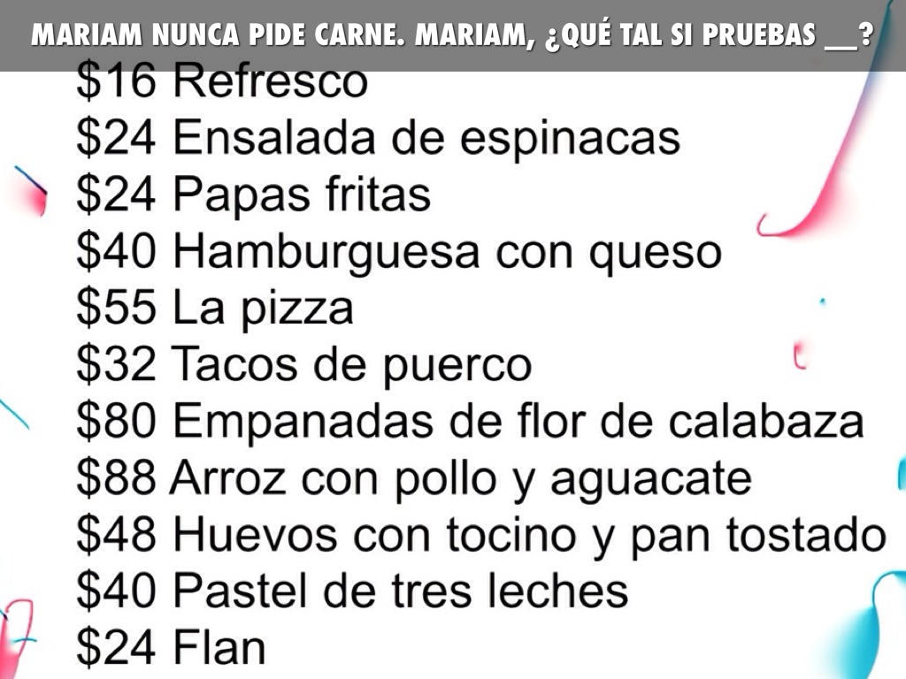 MARIAM NUNCA PIDE CARNE. MARIAM, ¿QUÉ TAL SI PRUEBAS __?