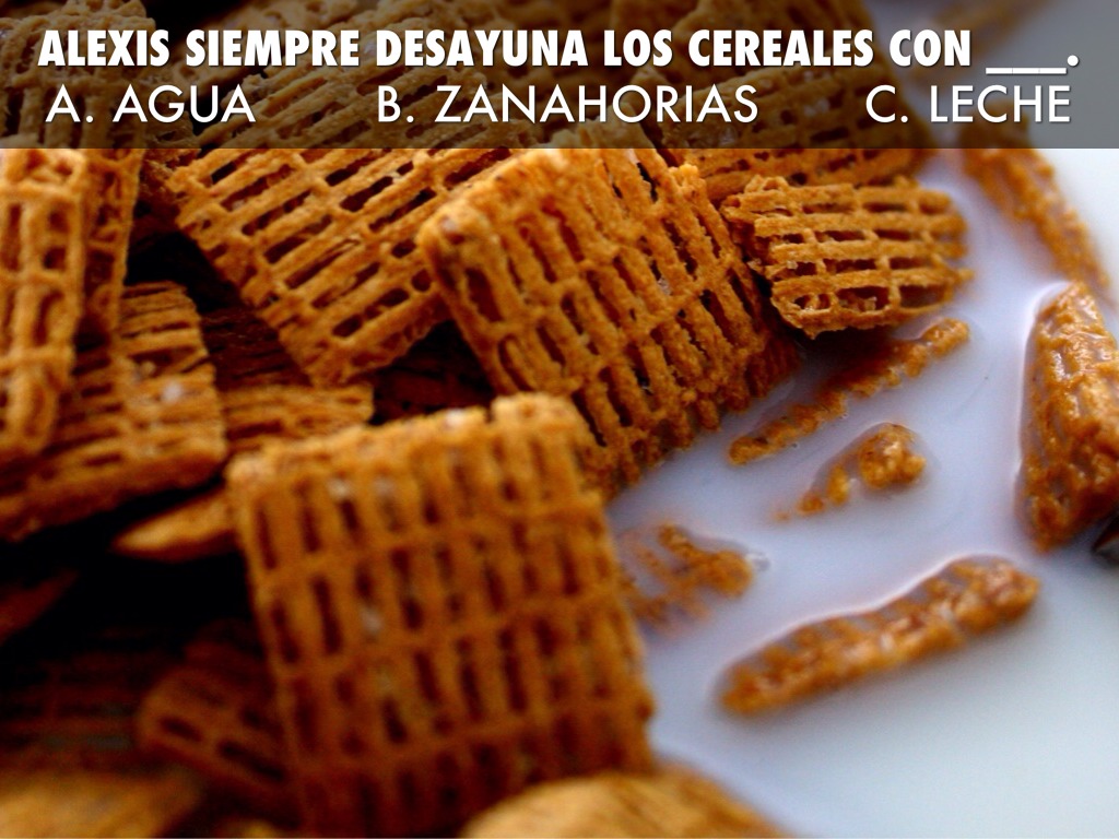 ALEXIS SIEMPRE DESAYUNA LOS CEREALES CON ___.