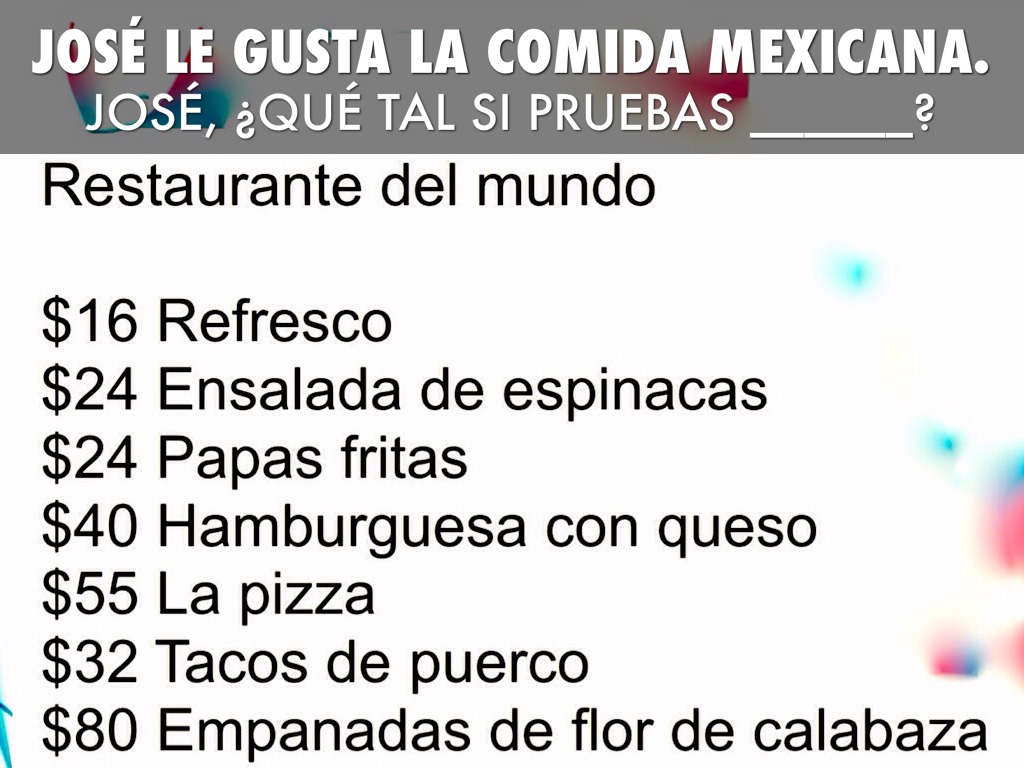 JOSÉ LE GUSTA LA COMIDA MEXICANA.
