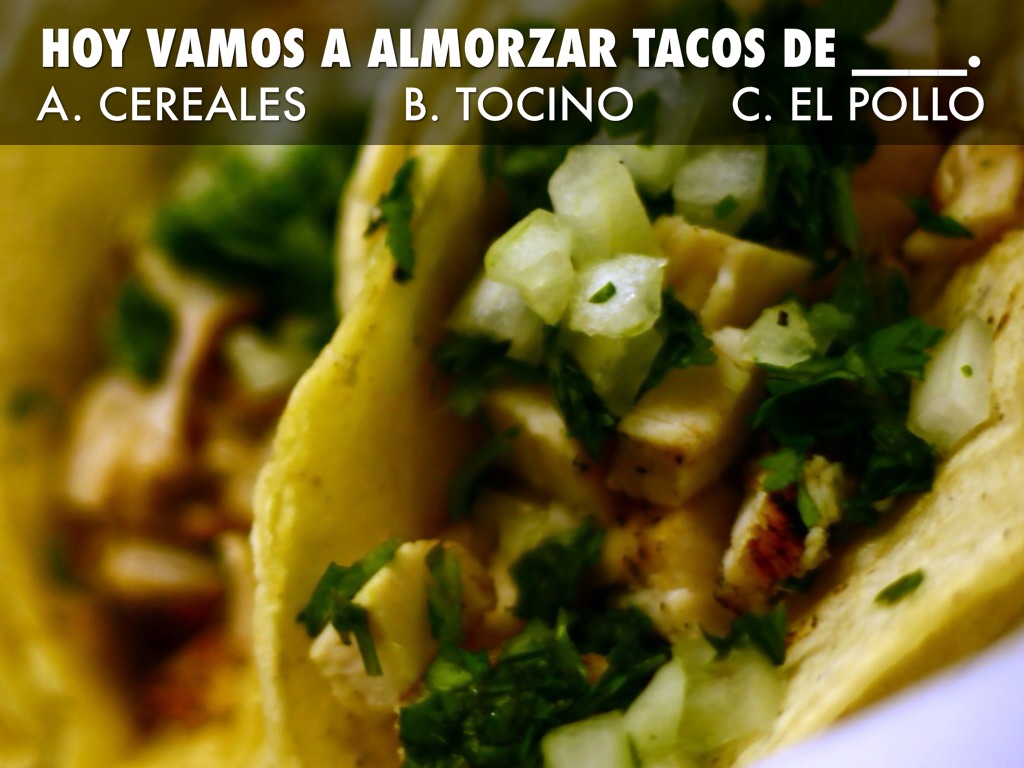 HOY VAMOS A ALMORZAR TACOS DE ____.