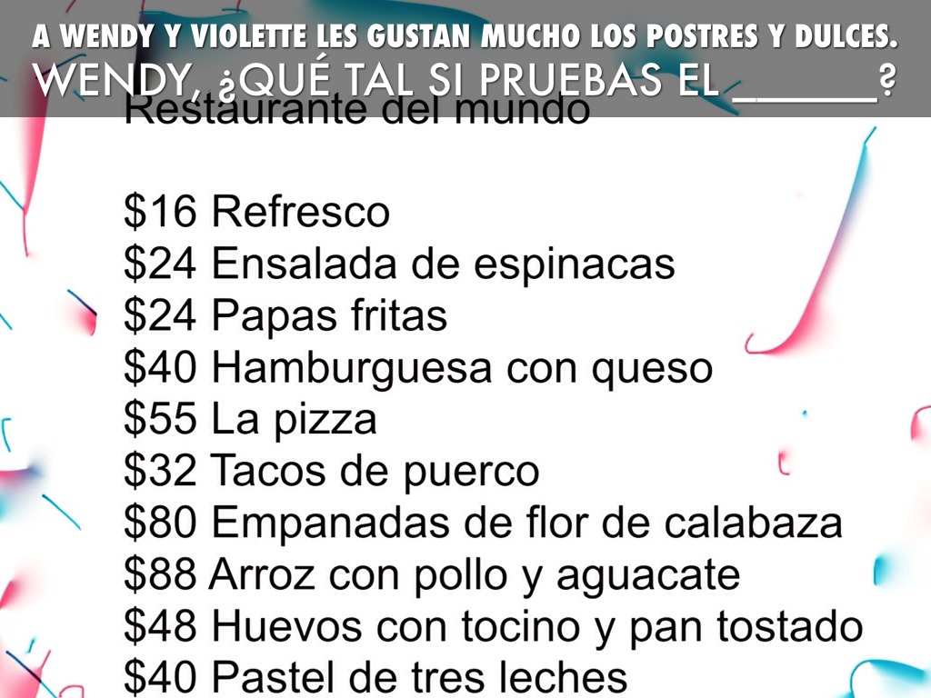 ¿QUÉ HAY DE ___? TENGO MUCHA HAMBRE.