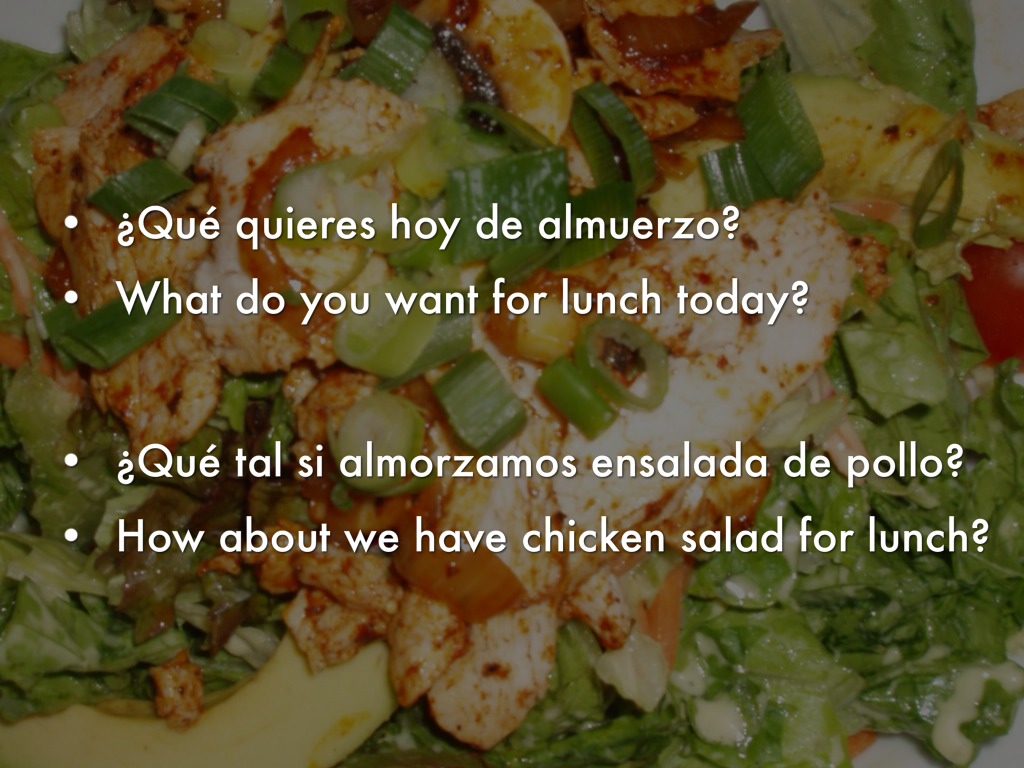 - ¿Qué tal si almorzamos ensalada de pollo?