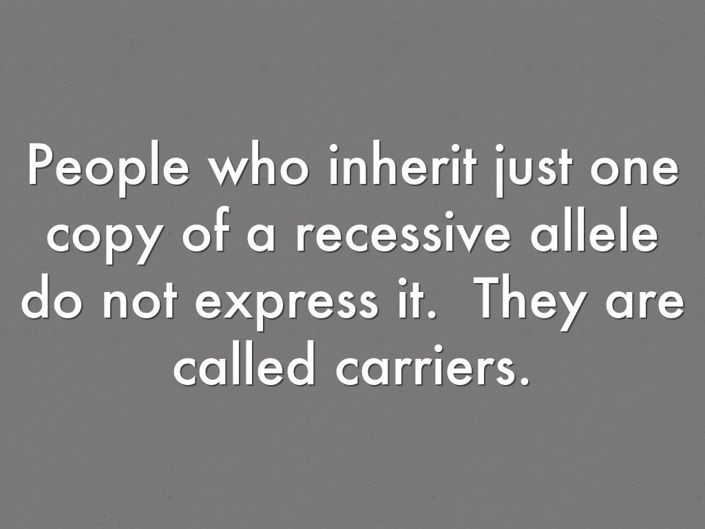 People who inherit just one copy of a recessive allele do not express it. They are called carriers.