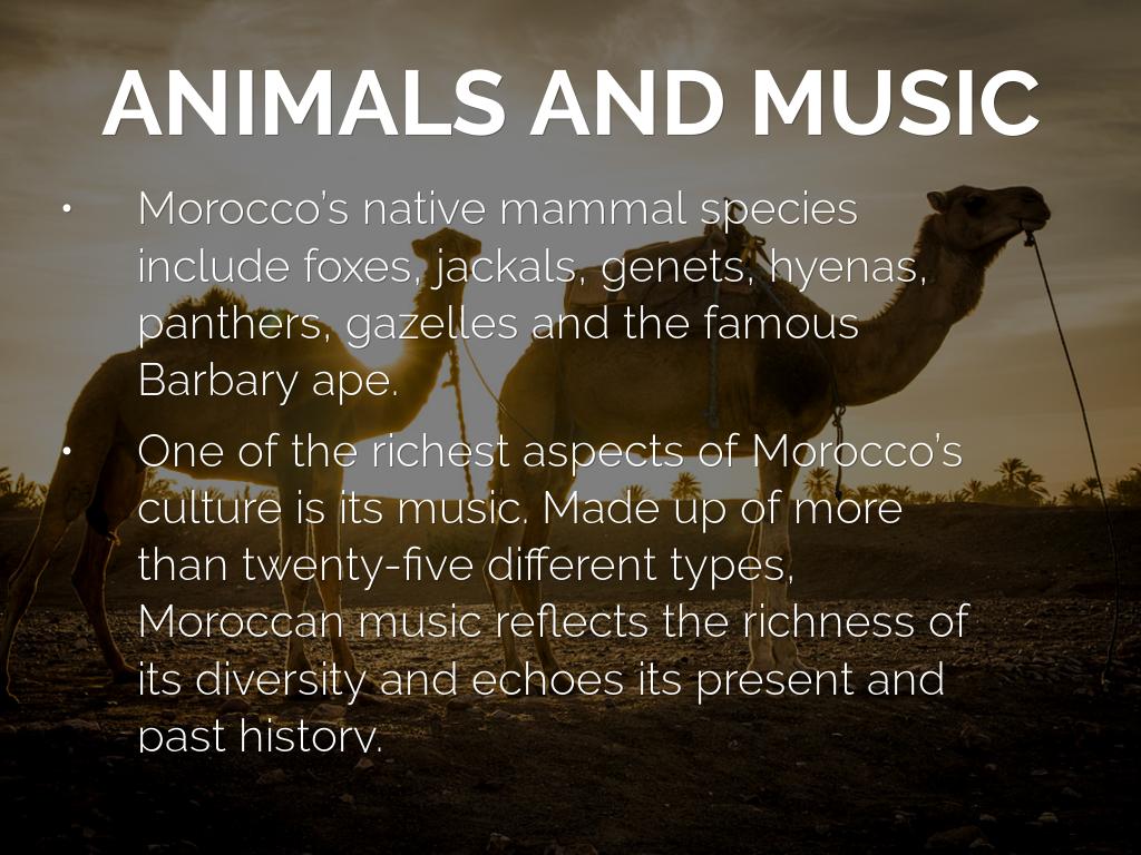 Morocco’s native mammal species include foxes, jackals, genets, hyenas, panthers, gazelles and the famous Barbary ape.